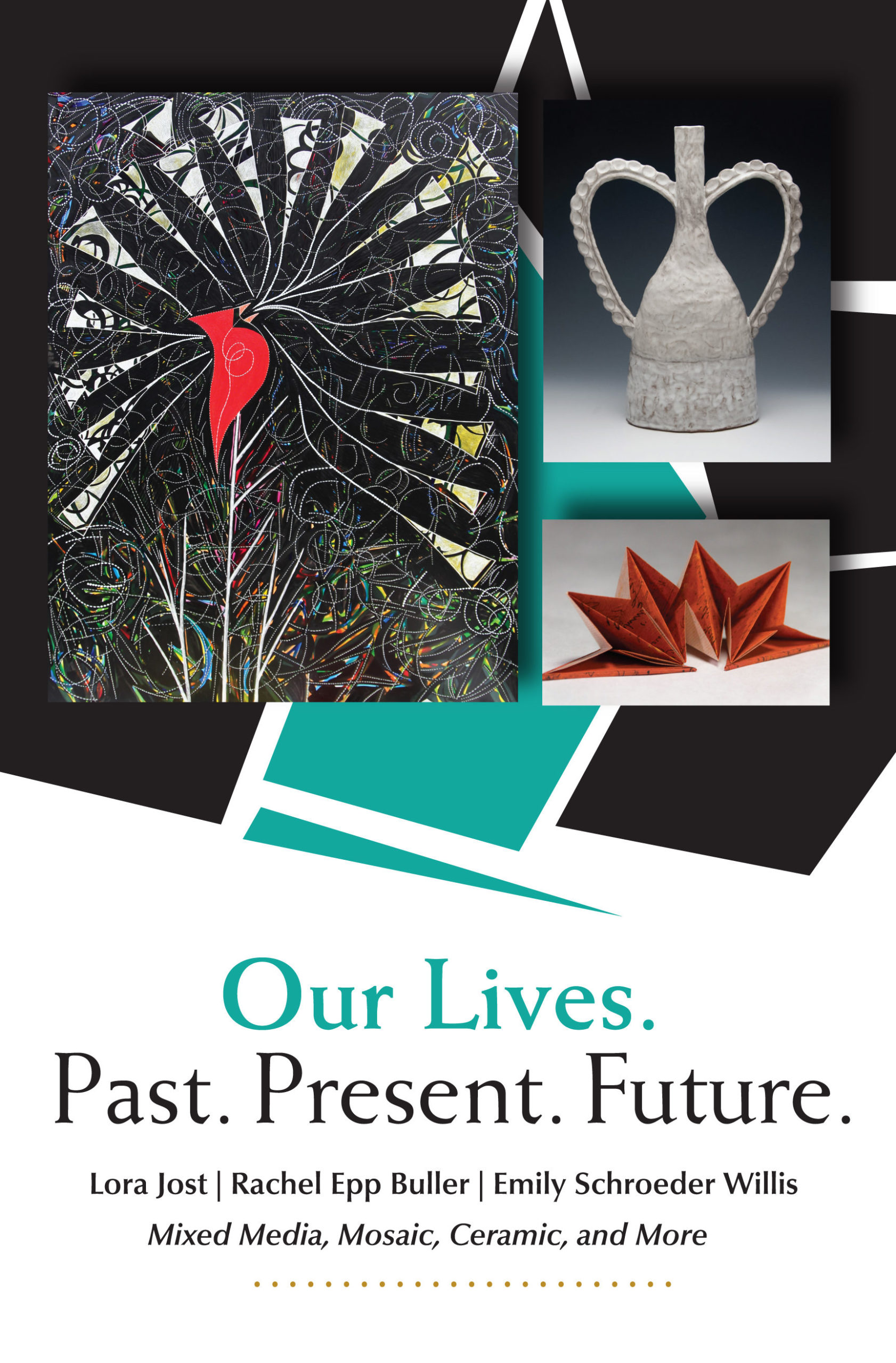 The artwork of Lora Jost, Emily Willis Schroeder, and Rachel Epp Buller will be featured in “Our Lives: Past, Present, and Future.”