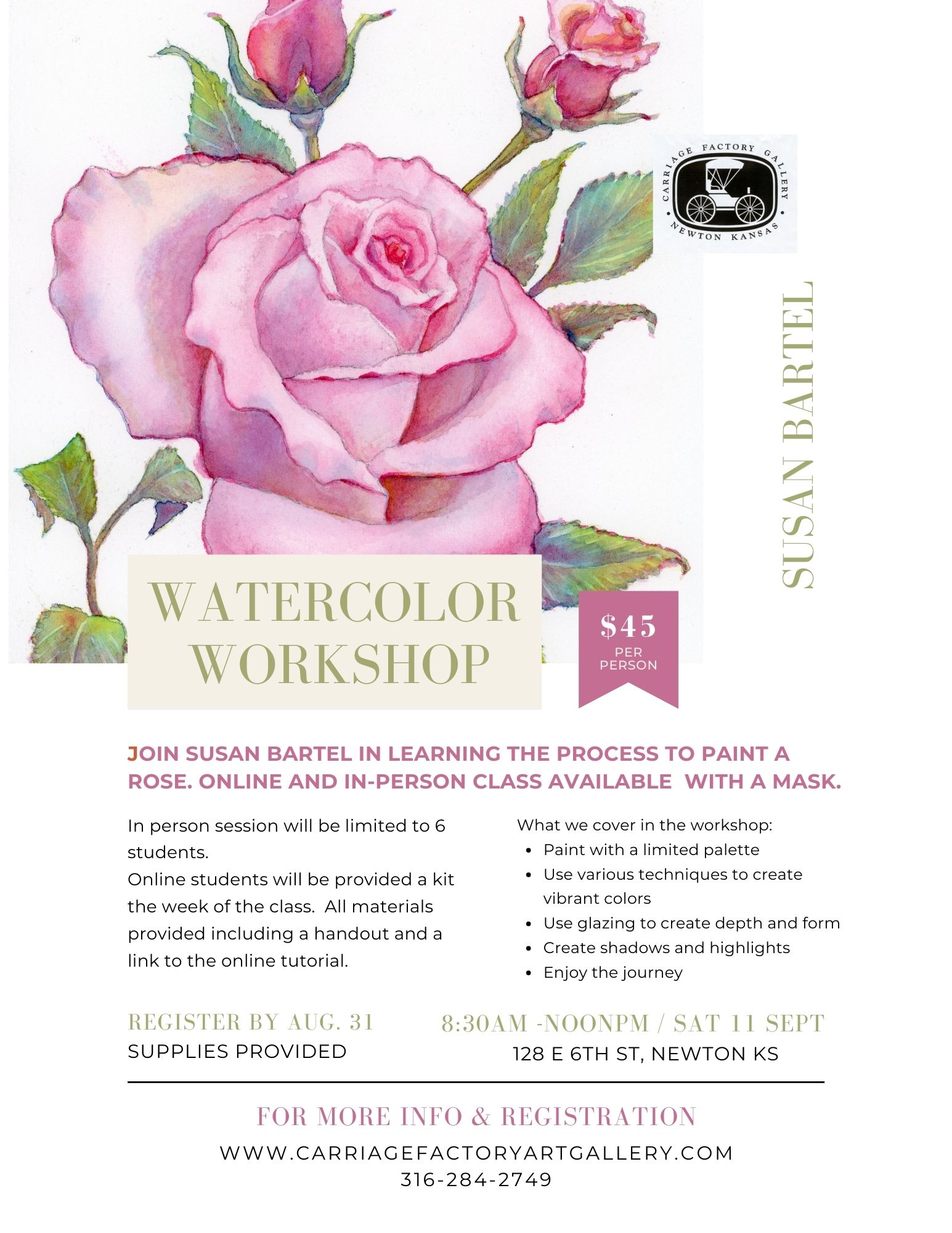 JOIN SUSAN BARTEL IN LEARNING THE PROCESS TO PAINT A ROSE. ONLINE AND IN-PERSON CLASS AVAILABLE WITH A MASK.