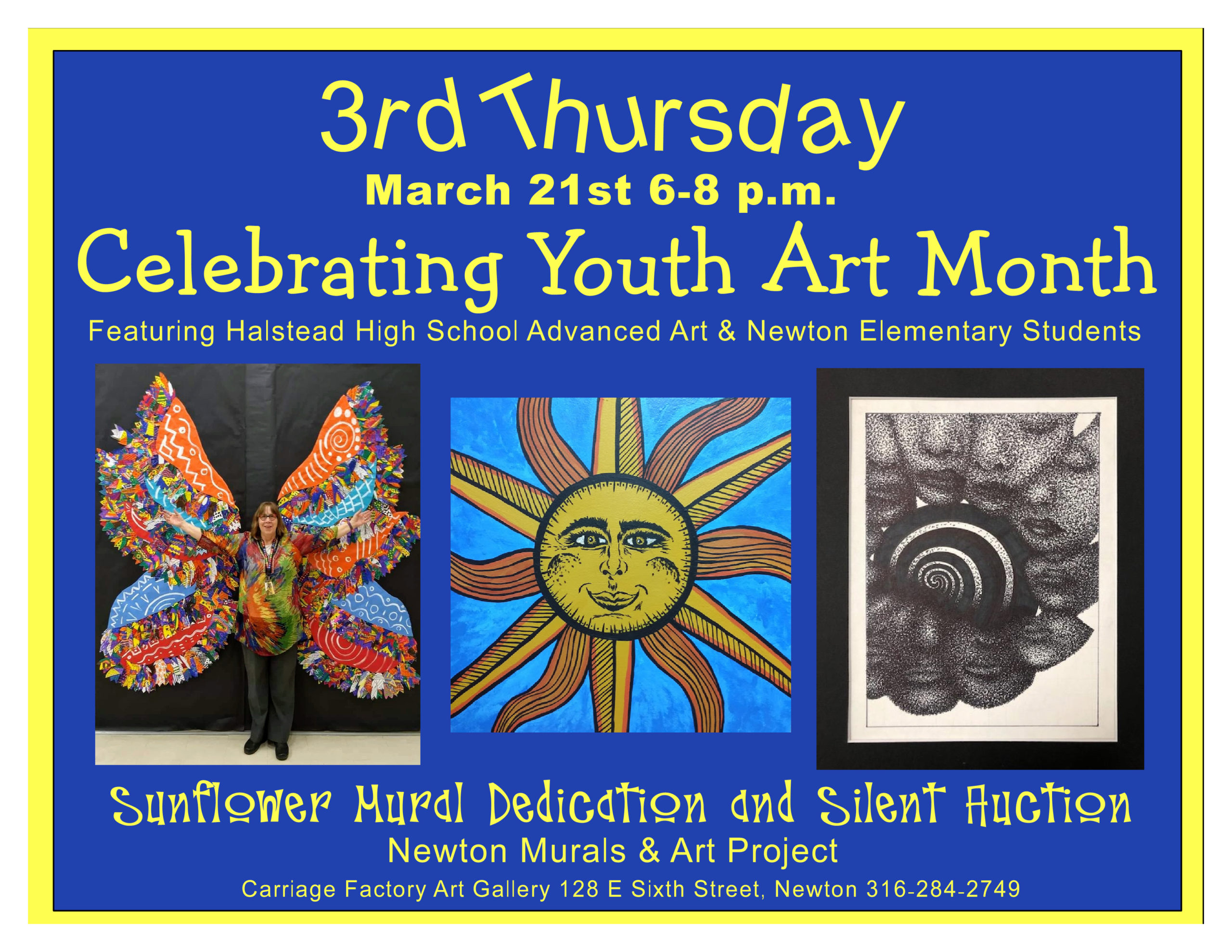 Artwork from Halstead High School advanced art and Newton elementary art students will be on display in honor of March being Youth Art Month!